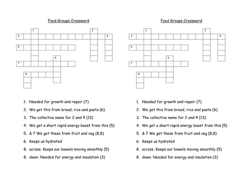 Food Groups Crossword Teaching Resources